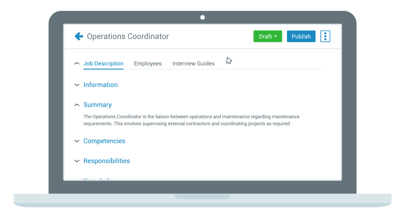 Senior or leadership roles may also have leadership competencies attached — like inspiring others, for example. These capture the transformational traits that help drive organizations forward.